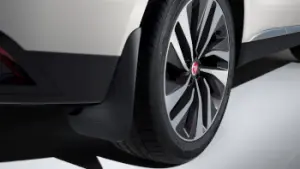 Jaguar branded front mudflaps complement the lines of your vehicle, reduce spray and provide protection from dirt and stone chippings.